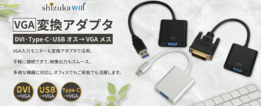 DVI・USB・Type-C ( オス ) → VGA ( メス )