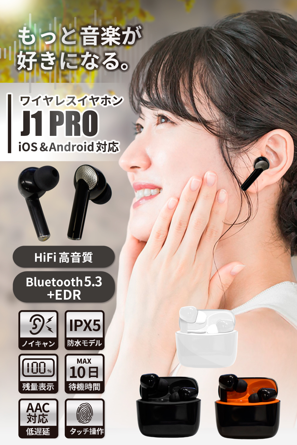 シズカウィル イヤホン Bluetooth ワイヤレスイヤホン iPhone対応 Android対応 ノイズキャンセリング 自動ペアリング ブルートゥース 無線イヤホン Bluetooth5.3+EDR HIFI IPX5防水 J1PRO ブラック×ブラック 1個入り