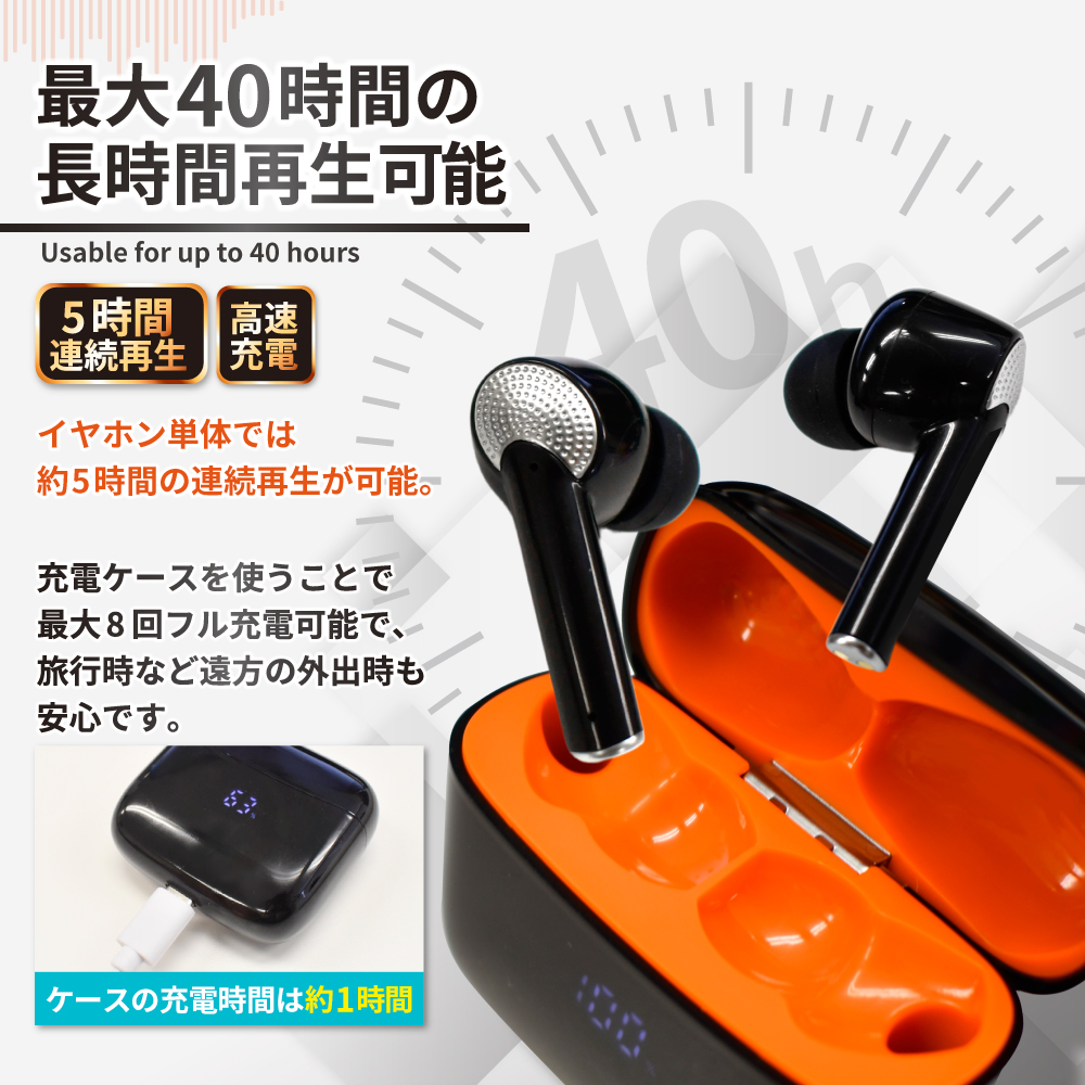再生時間:約5時間、充電ケース使用時は最大40時間