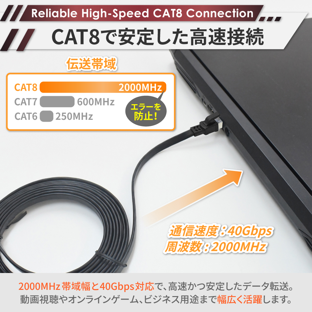 超高速・安定のCAT8ケーブルで、快適なネットワーク環境を実現!