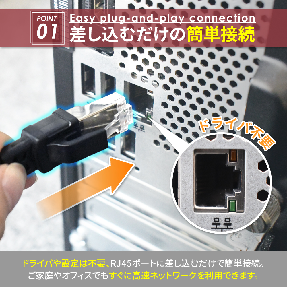 = ドライバ不要、RJ45ポートに差し込むだけですぐ使える