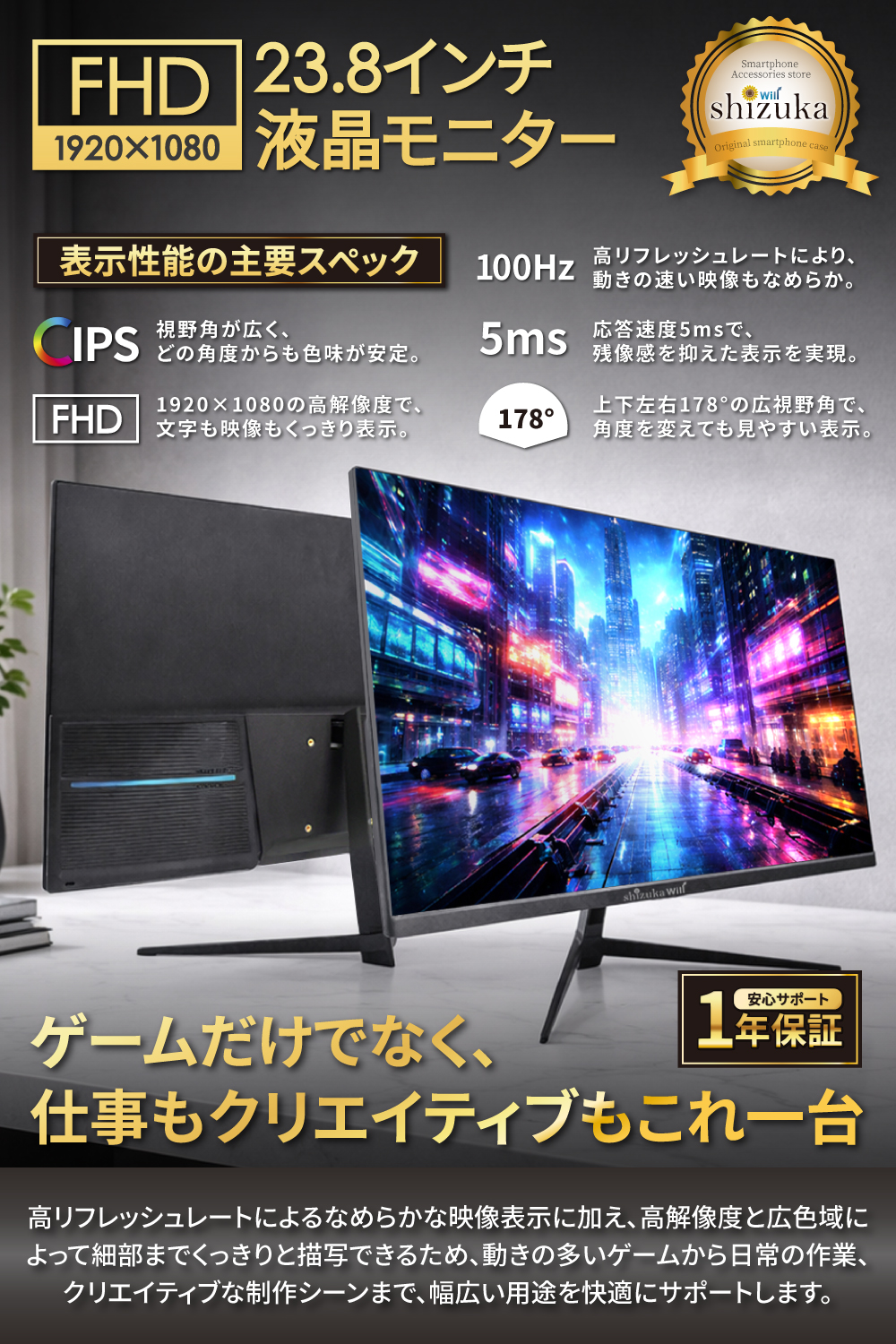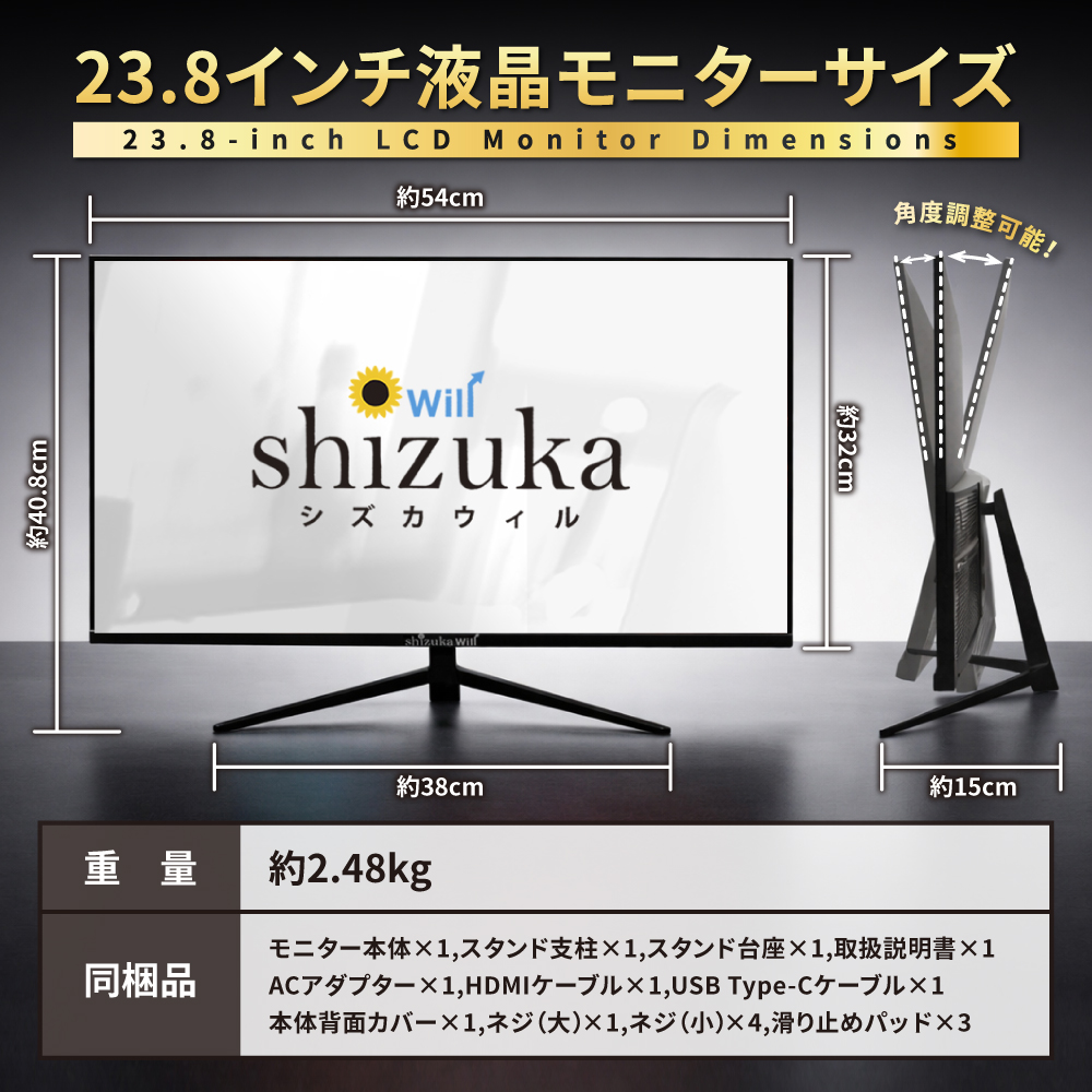 シズカウィル 液晶ディスプレイ 01 23.8インチ ブラック 1個入り