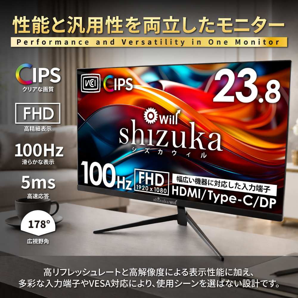 100Hz 高リフレッシュレート / FHD ( 1920×1080 ) / IPSパネル / USB Type-C入力 / 広視野角
