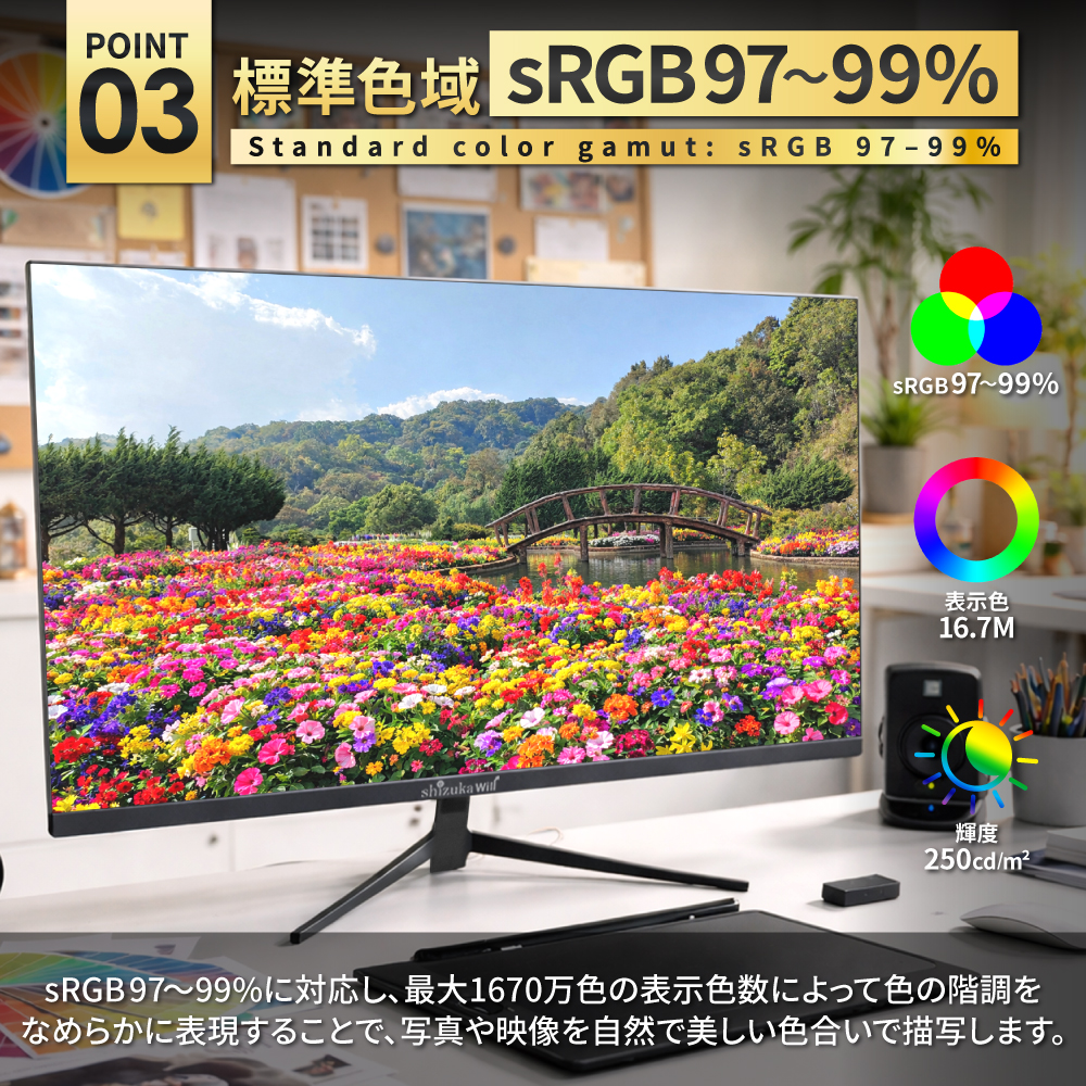 広い色域に対応し、写真や映像を自然で鮮やかに表現。
