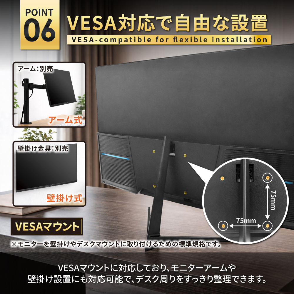 ※モニターアーム・壁掛け金具は付属しておりません。別途ご用意ください。