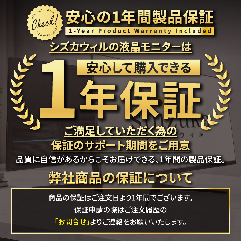 ご購入後も安心してご使用いただけるよう、メーカー1年間保証を付帯。