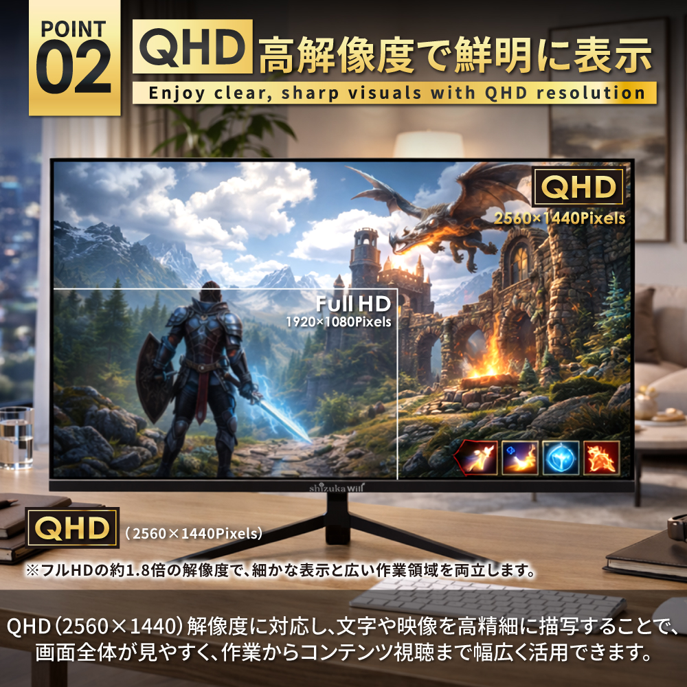 ゲームプレイはもちろん、動画視聴や作業時の視認性向上にも貢献します。