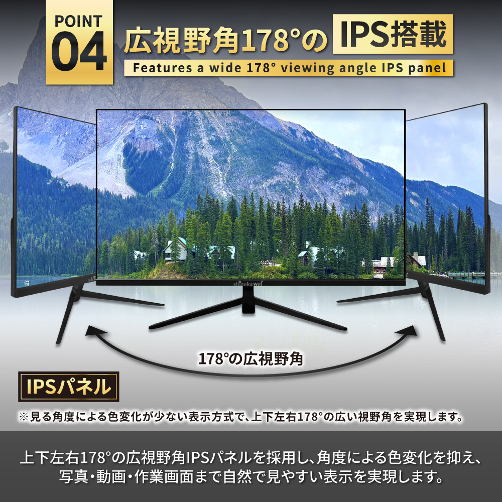 上下左右178°の広視野角設計により、角度を変えても色味や明るさの変化を抑制。
