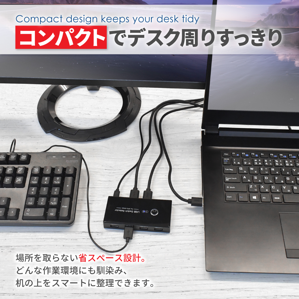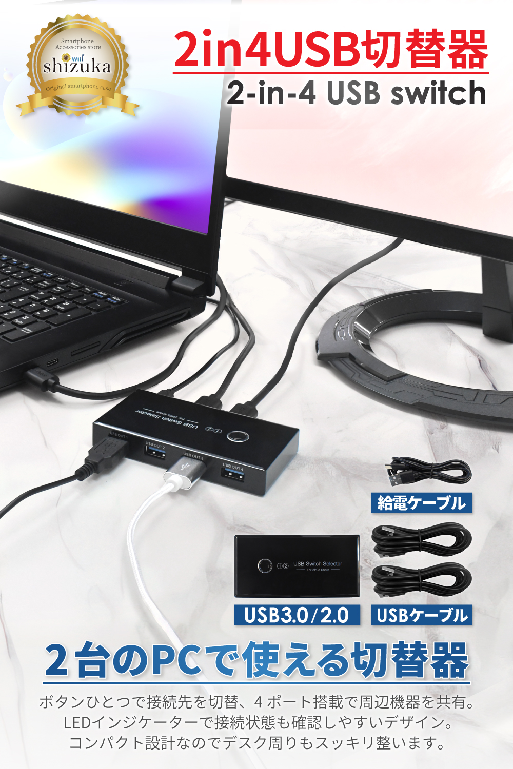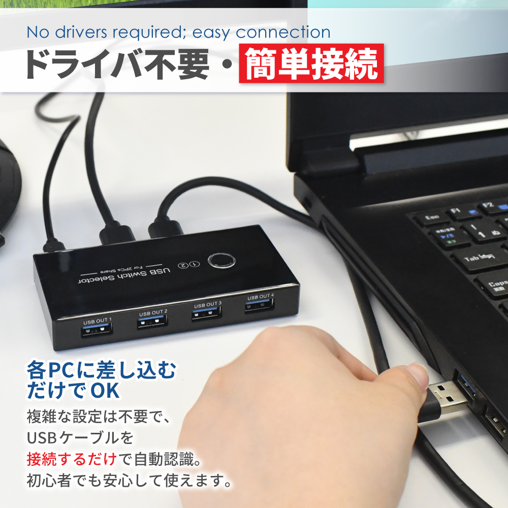 複数PCでUSB機器をスマートに共有できる、2in4の便利な切替器!