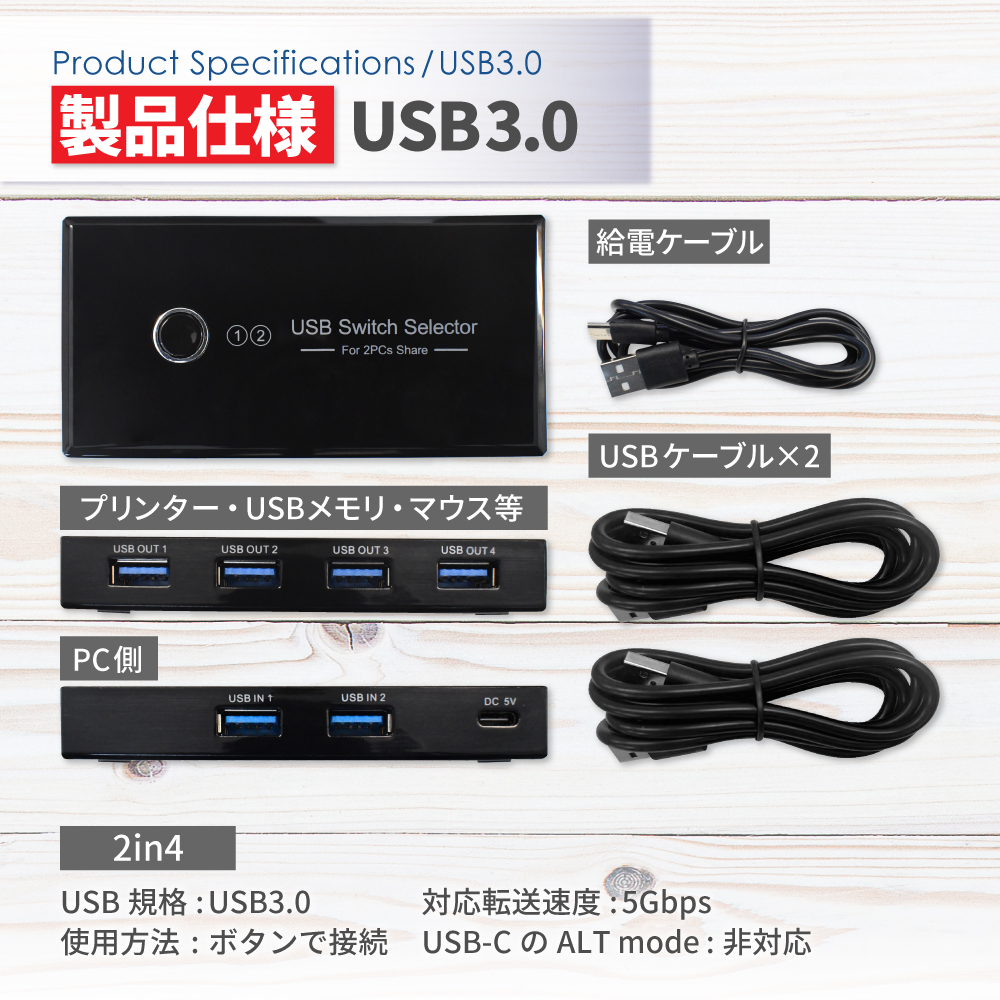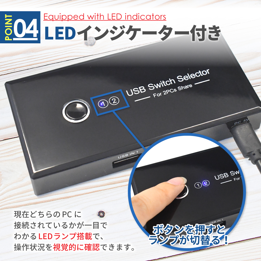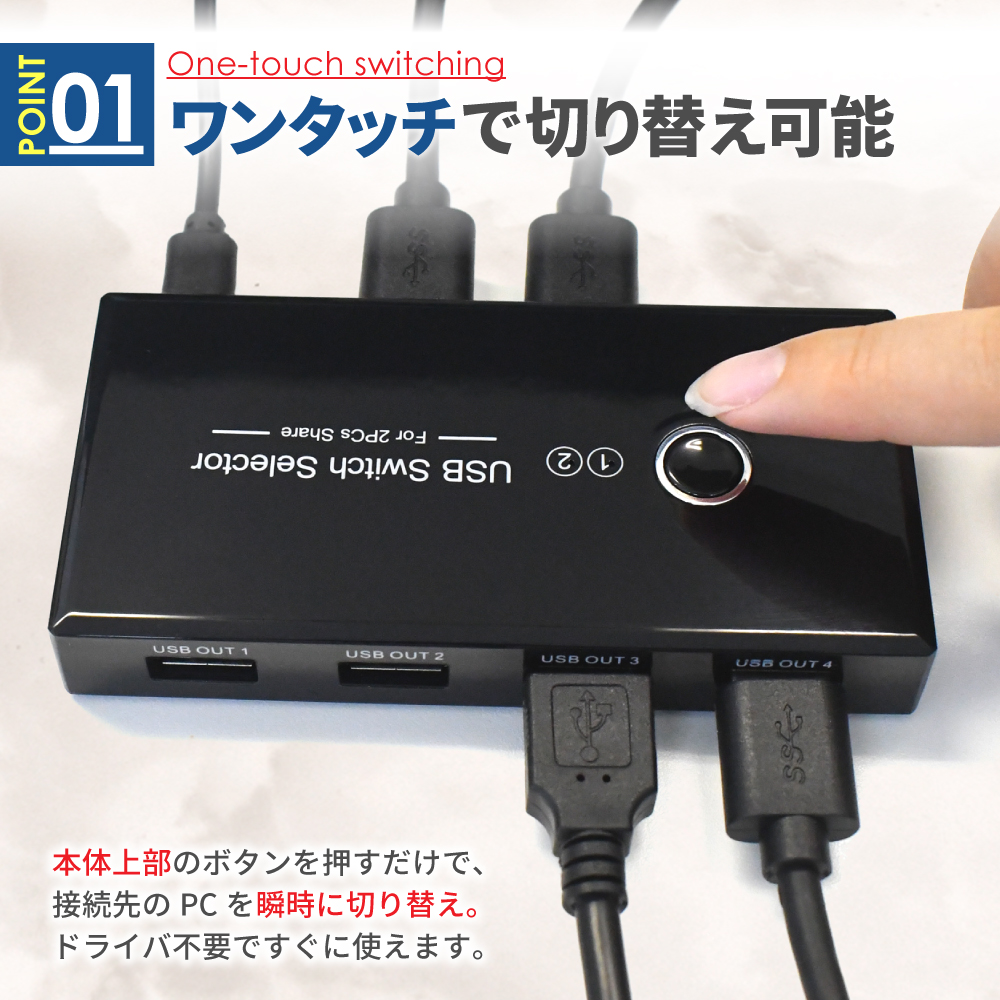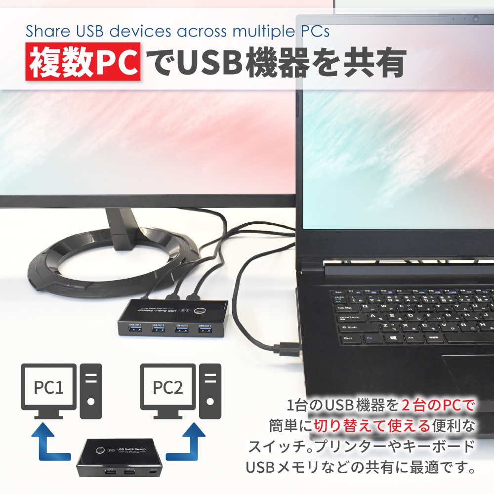 = 1台のUSB機器を2台のPCで切り替え可能、