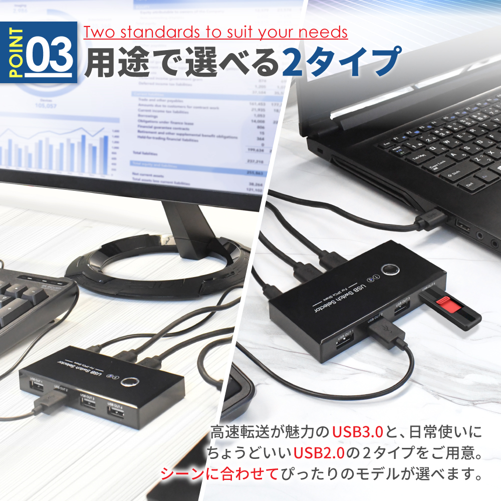 = 高速転送対応のUSB3.0と日常使いに便利なUSB2.0から選べます