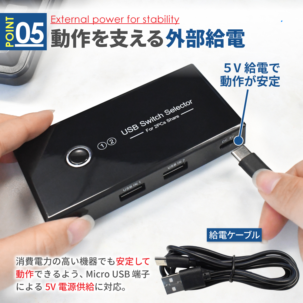 = 5V給電に対応し、消費電力の大きな機器でも安定して動作します