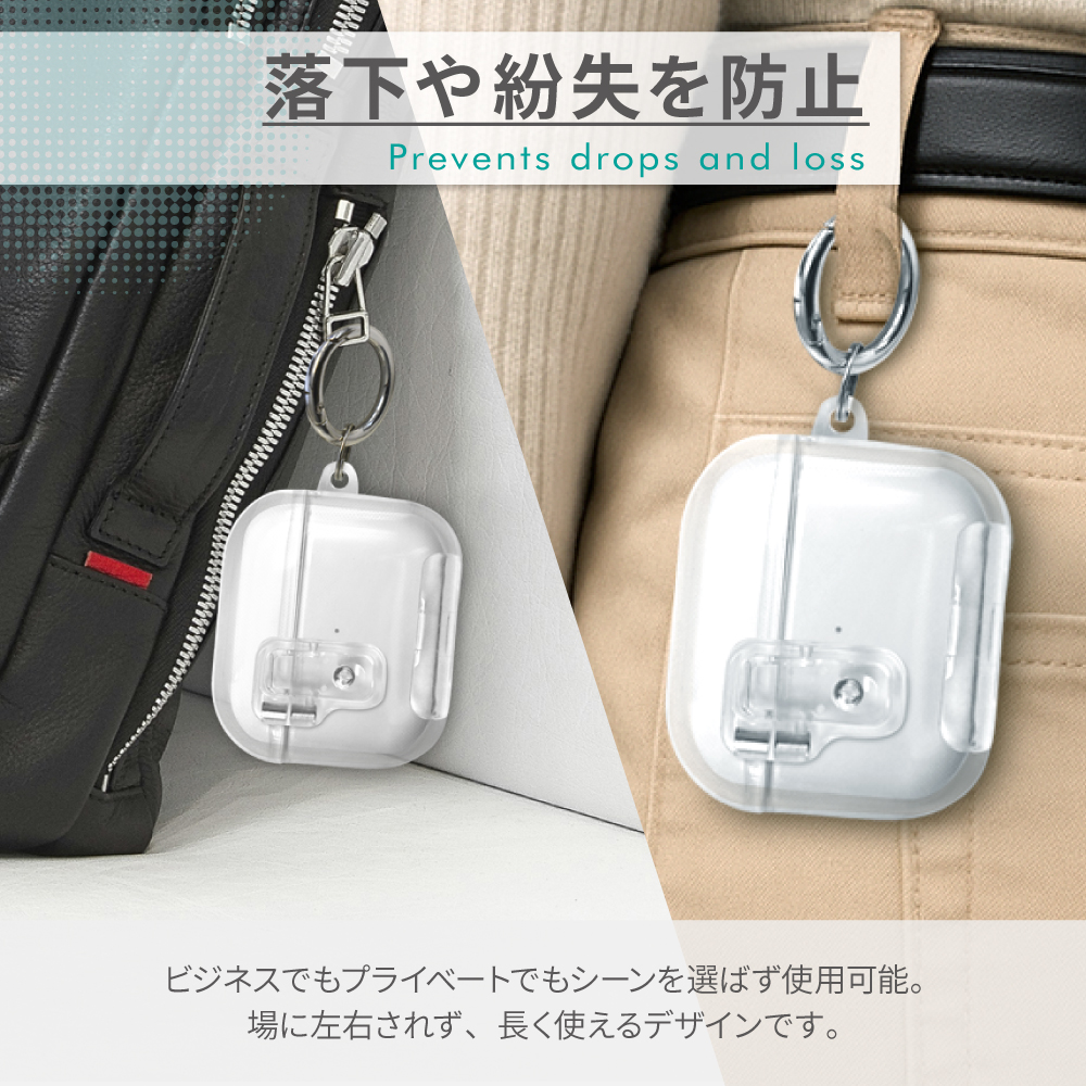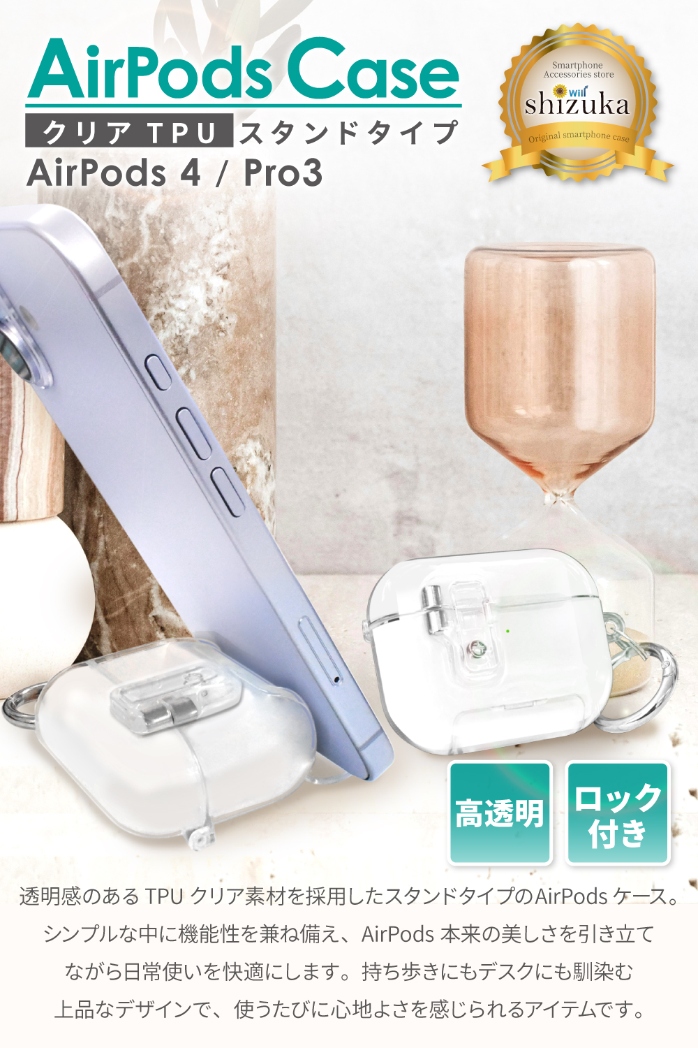 シズカウィル AirPods 4 スタンド機能付き ケース クリア 透明 カラビナ付 C05 1個入り