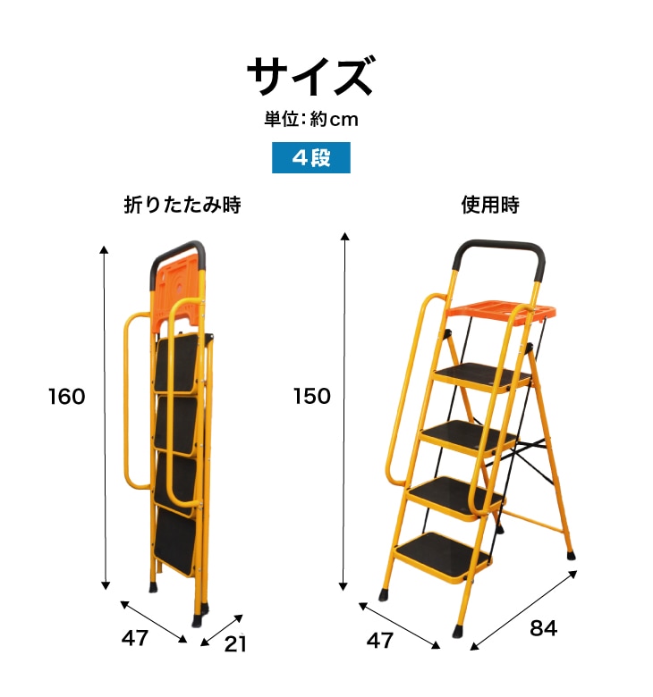 安心の両手すり付き脚立 トレー付き 4段