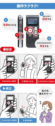 シニア向け ボイスレコーダー 押すだけ 簡単 録音 小型 デジタル 録音機 コンパクト 電池不要 のコピー