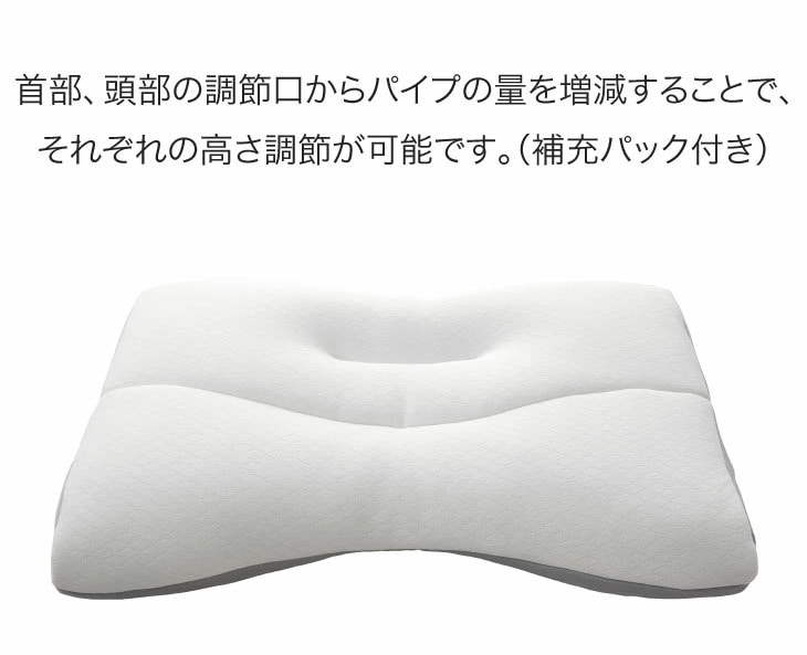 詰めものの抜き差しで高さの微調整が可能です。首部、頭部の調節口からパイプの量を増減することで、それぞれの高さ調節が可能です。
