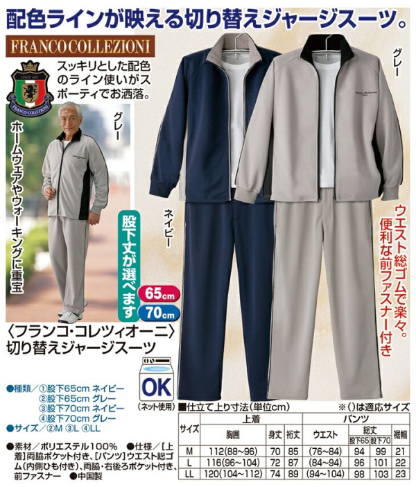 ジャージ フランコ・コレツィオーニ スウェット セットアップ 上下セット ジャージ スポーツウェア 部屋着 ルームウェア グレー 股下65cm Mサイズ