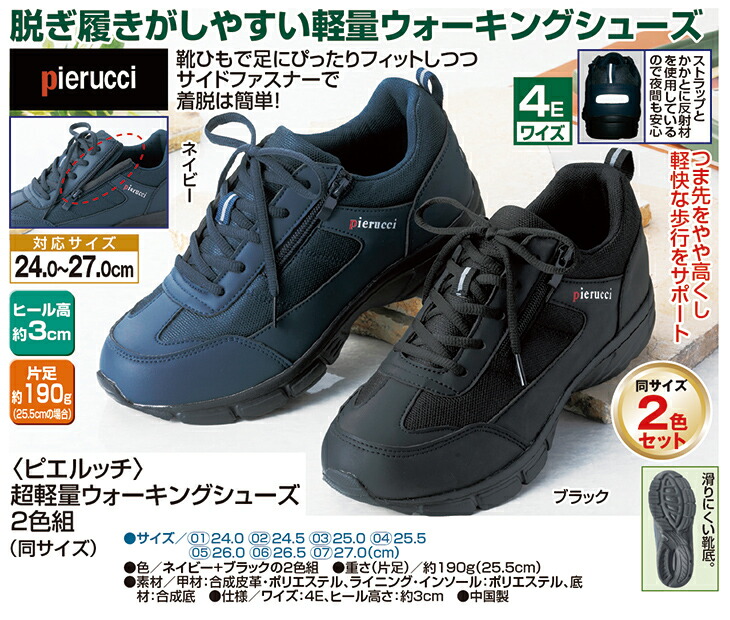 超軽量 ウォーキングシューズ 2色組 メンズ レディース スニーカー トレーニングシューズ 靴 運動靴 26.5cm