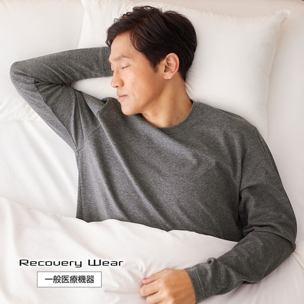 着て寝るだけ遠赤外線効果で疲労回復をサポートするリカバリーウェア、長袖シャツとロングパンツの上下セット。鉱石を原料としたセラミックス粉末を独自配合した特殊繊維の遠赤外線効果で、疲労回復、血行促進、筋肉のハリ・コリの緩和が期待できる疲労回復パジャマです。全方位ストレッチでしなやかな着心地で、眠りの質も向上。