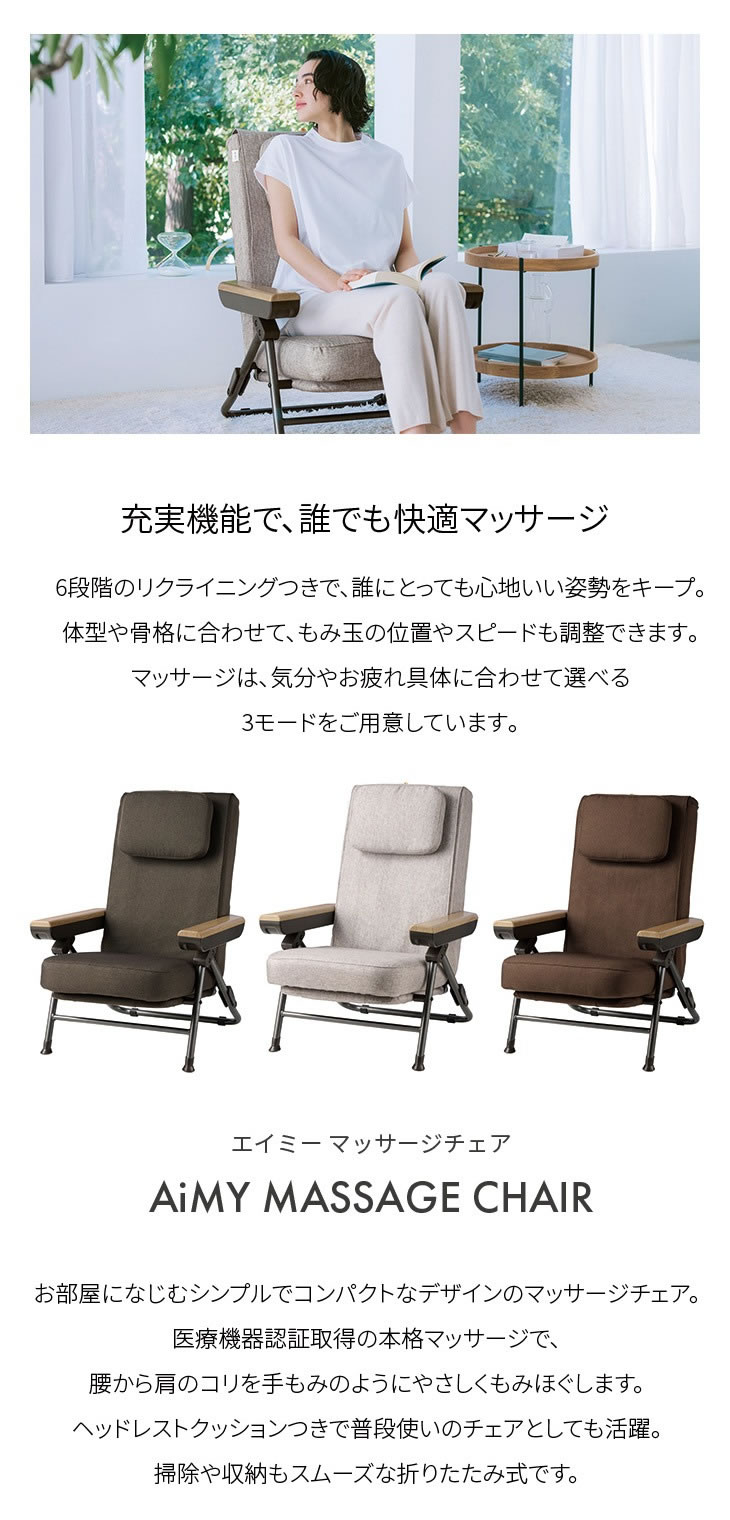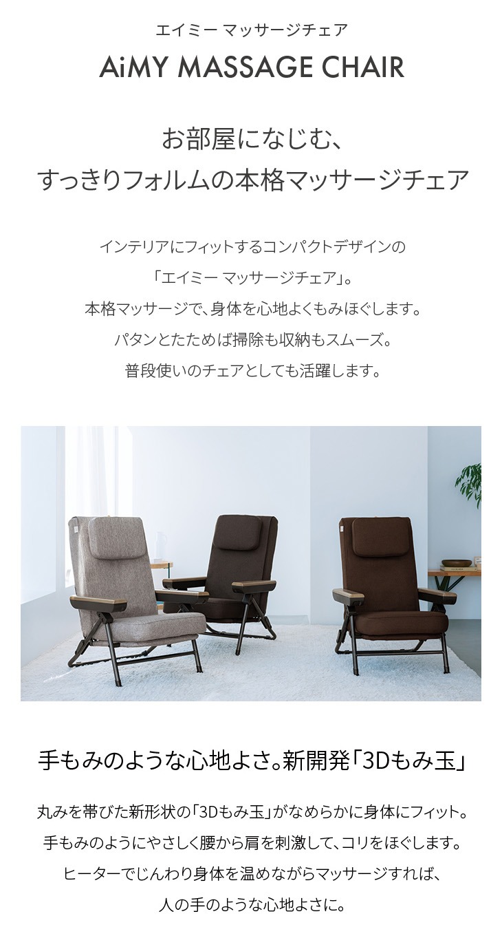 エイミー マッサージチェア 3Dもみ玉 リクライニング 折りたたみ式 AiMY AIM-265