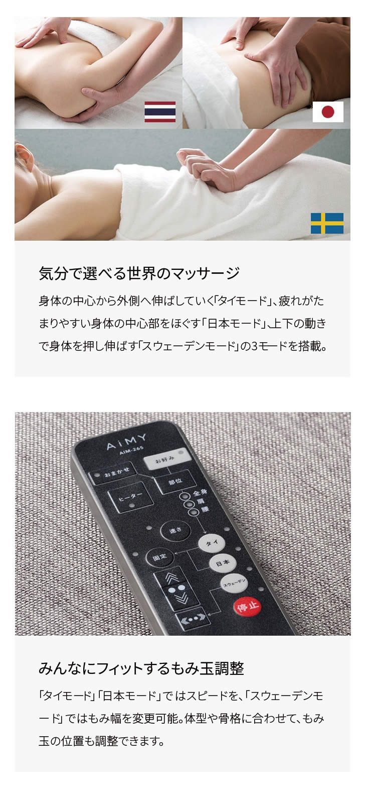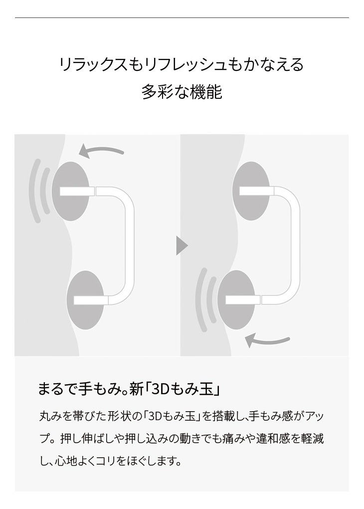 3つの動き方を搭載したもみ玉はもみ心地抜群!
