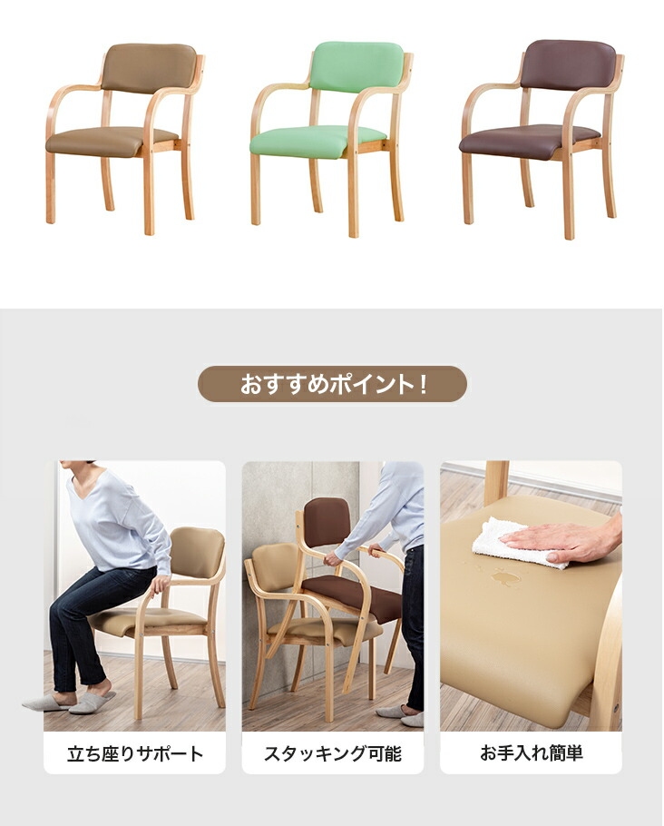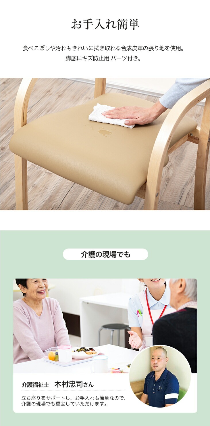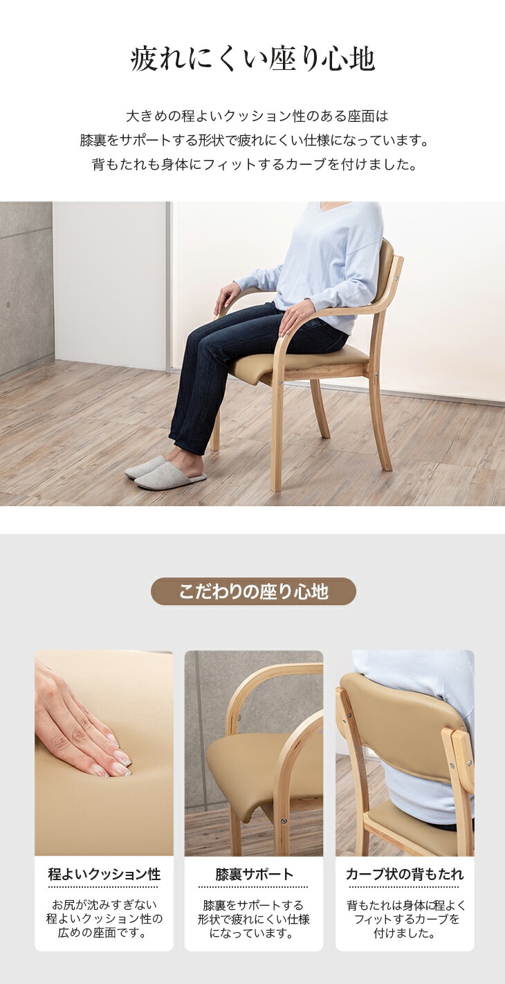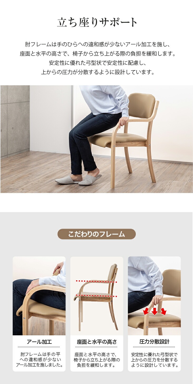 日本製 立ち座りサポート ダイニングチェア 完成品 低反発クッション付き ベージュ