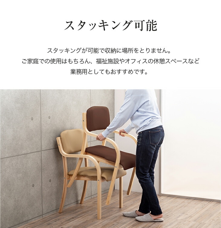 肘フレームが座面と水平の高さで、椅子から立ち上がる際の負担を緩和させる設計です。