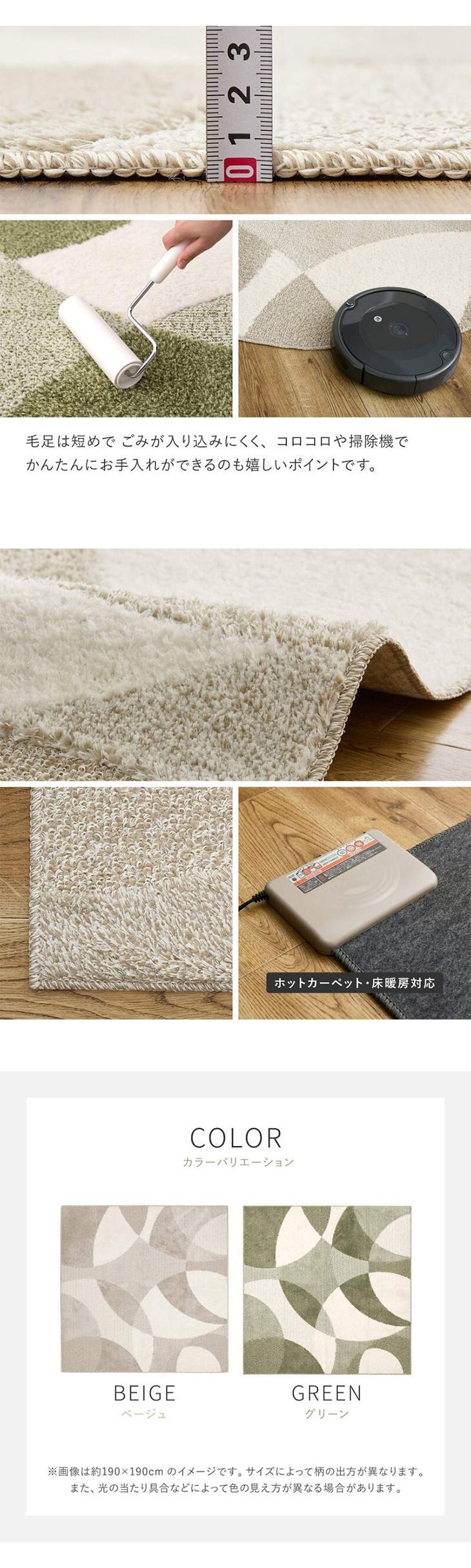 3.オールシーズン快適&お手入れ簡単: 裏面は不織布貼りで床を傷つけにくく、ホットカーペット・床暖房に対応。オールシーズン快適です。毛足が短いため、掃除機やコロコロがけもラクラクです。