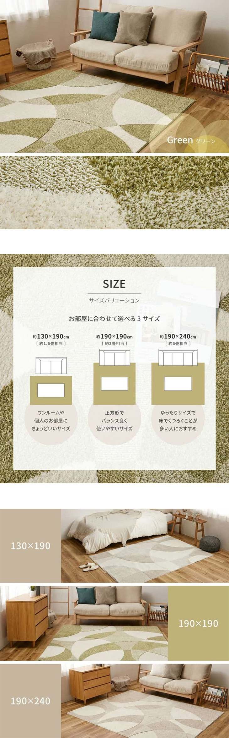 ラグ ラグマット 190×190cm 日本製 タフトカーペット「ジャスト」 グリーン