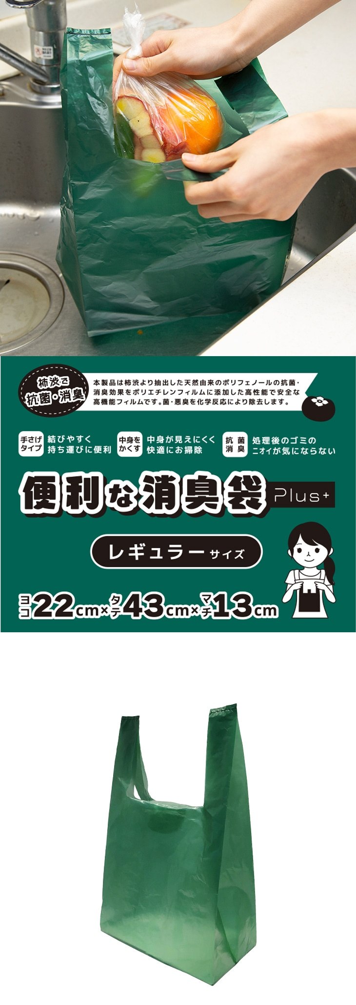 「ゴミ箱からのニオイが気になる」「ペットの排泄物やオムツの処理に困っている」そんな日常の悩みを解決する、強力な消臭機能を持ったゴミ袋です。渋柿から抽出した天然由来のポリフェノール成分を配合。抗菌・消臭効果により、気になるニオイを元から抑え、お部屋やキッチンを快適な空間に保ちます。