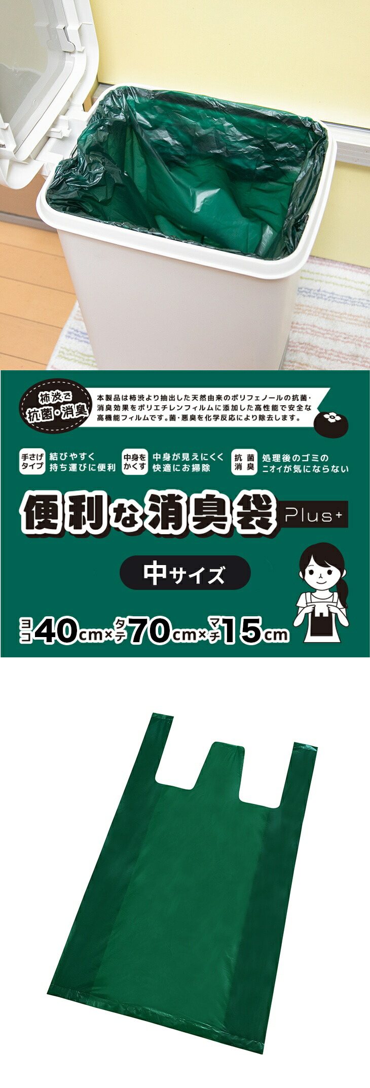 消臭袋 30L 80枚組 中サイズ 日本製 持ち手付 抗菌 消臭 ゴミ袋 柿渋エキス ポリフェノール 生ゴミ処理 オムツ ペット 透けにくい 厚手 丈夫