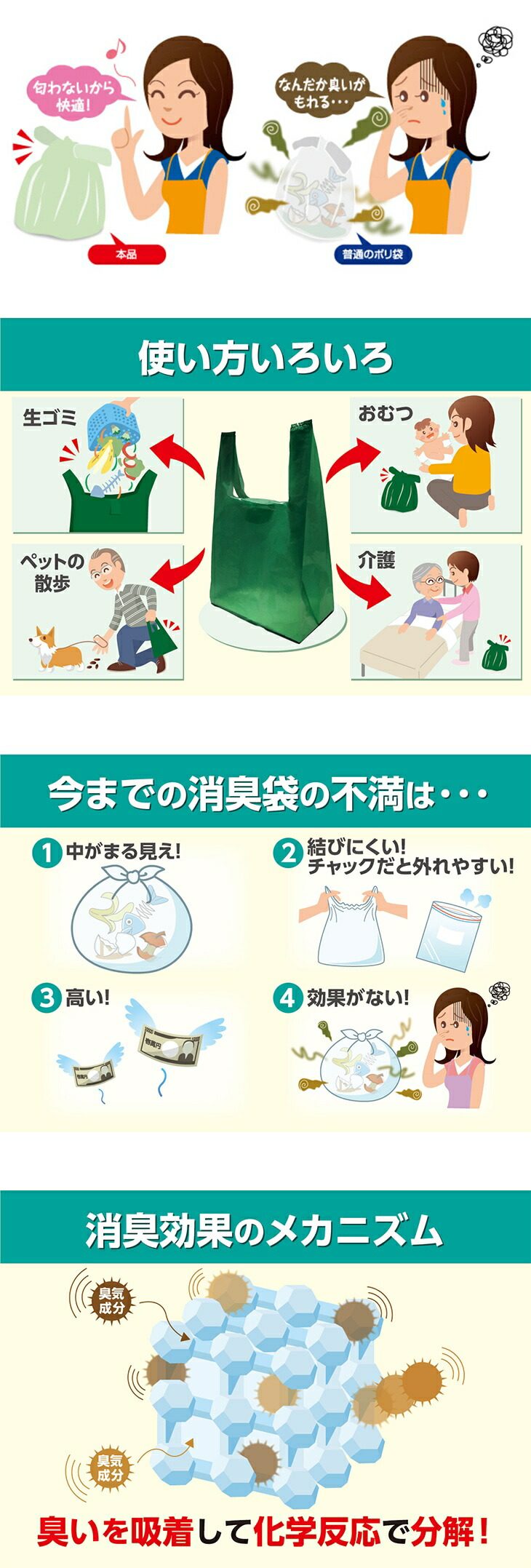 ニオイの悩みを解決!便利な消臭袋 中サイズ80枚組