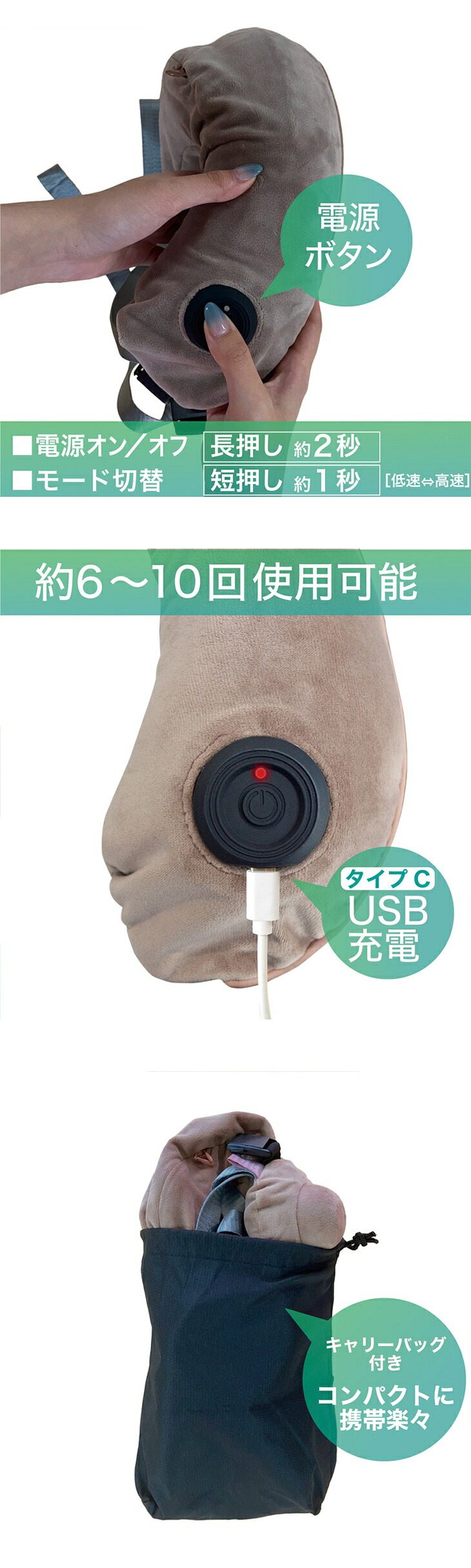 RELAAAX 電動ネック&ボディリラクサー ネックピロー 空気式 充電式 もみほぐし 寝顔が見えない フード付き