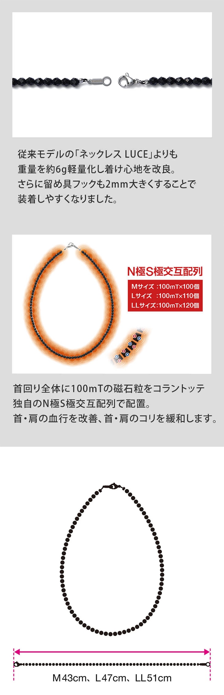 <コラントッテ> ネックレス LUCEα Matte 磁気ネックレス 医療機器認定 磁気 ネックレス メンズ レディース ユニセックス 肩こり
