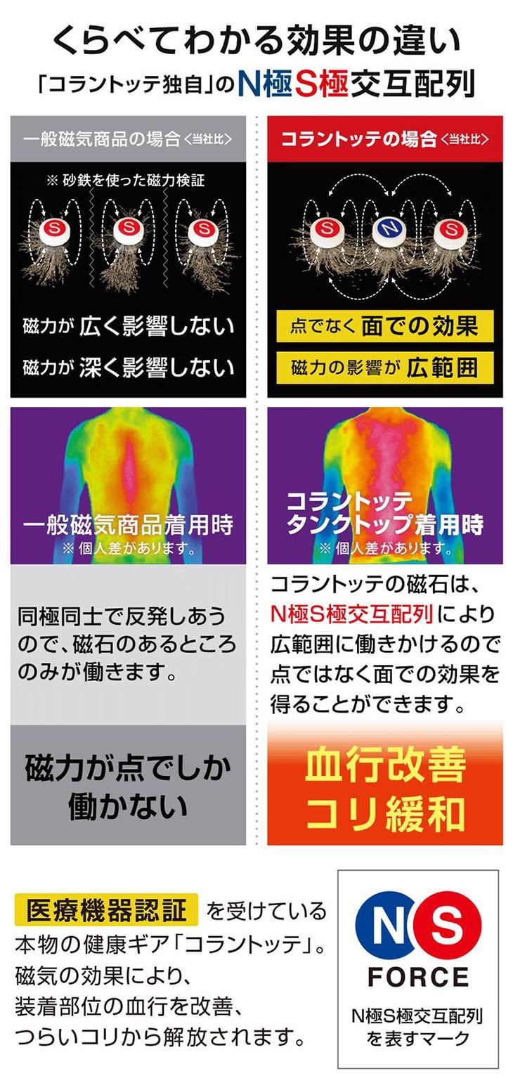 100ミリテスラの高磁力フェライト永久磁石を独自のN極S極交互配列で配置した磁気ネックレス。磁気の力で血流を改善、コリを緩和します。