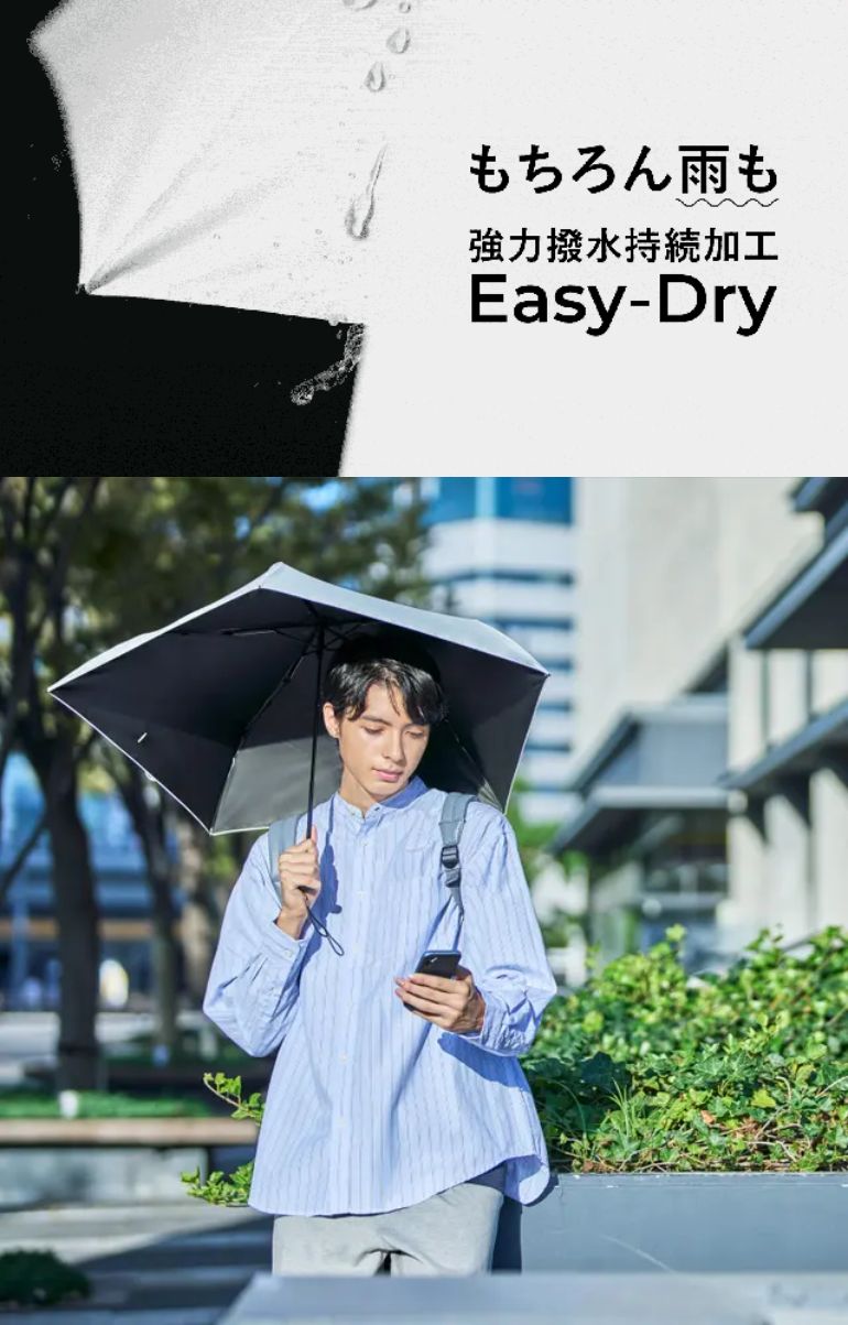 強力な撥水効果が持続する『Easy-Dry』コーティングをしています。また、耐水度は一般的な雨傘の品質基準を大きく上回る13,000mm以上も、あります。