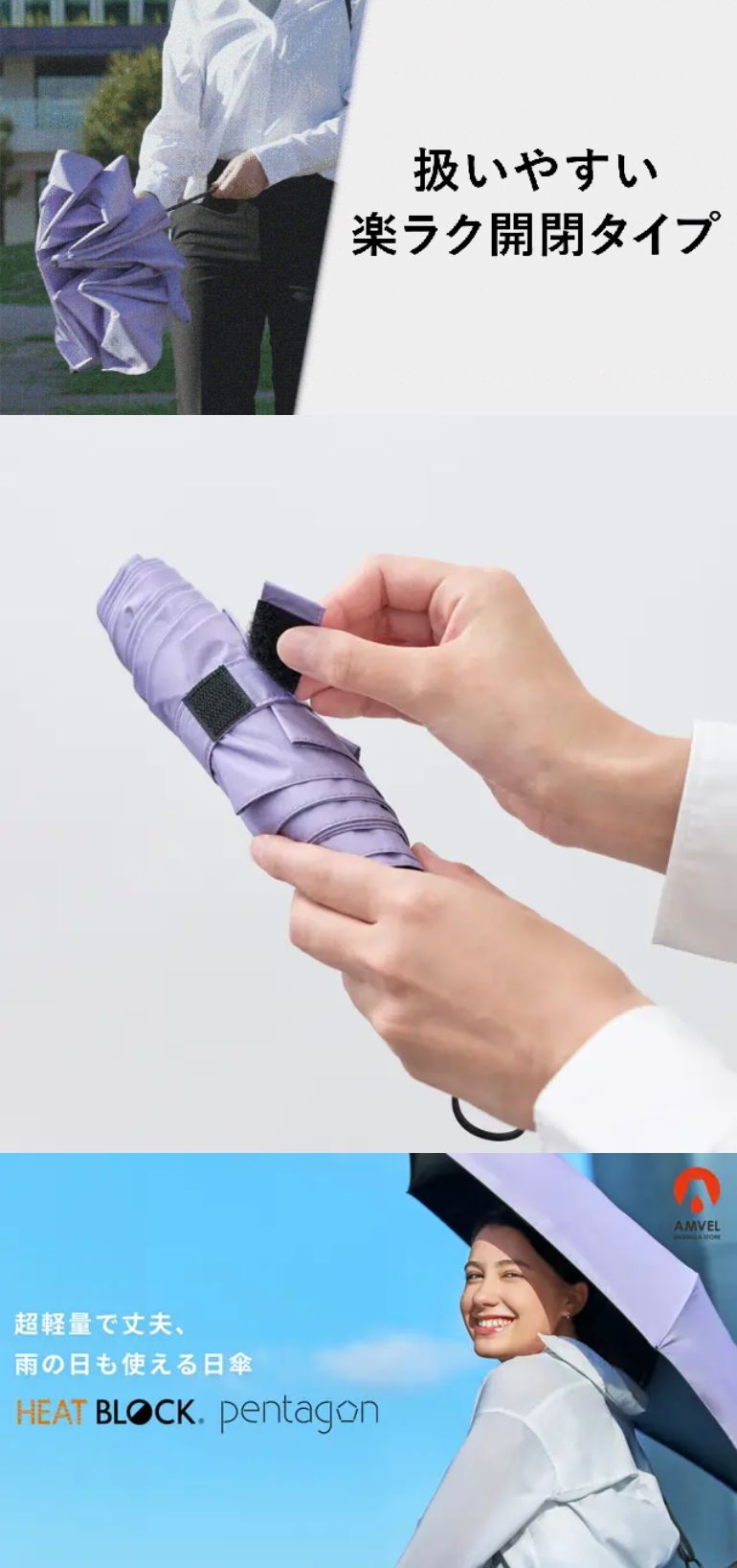 と、三拍子そろった晴雨兼用折りたたみ傘 HEATBLOCK pentagon(ヒートブロックペンタゴン)。
