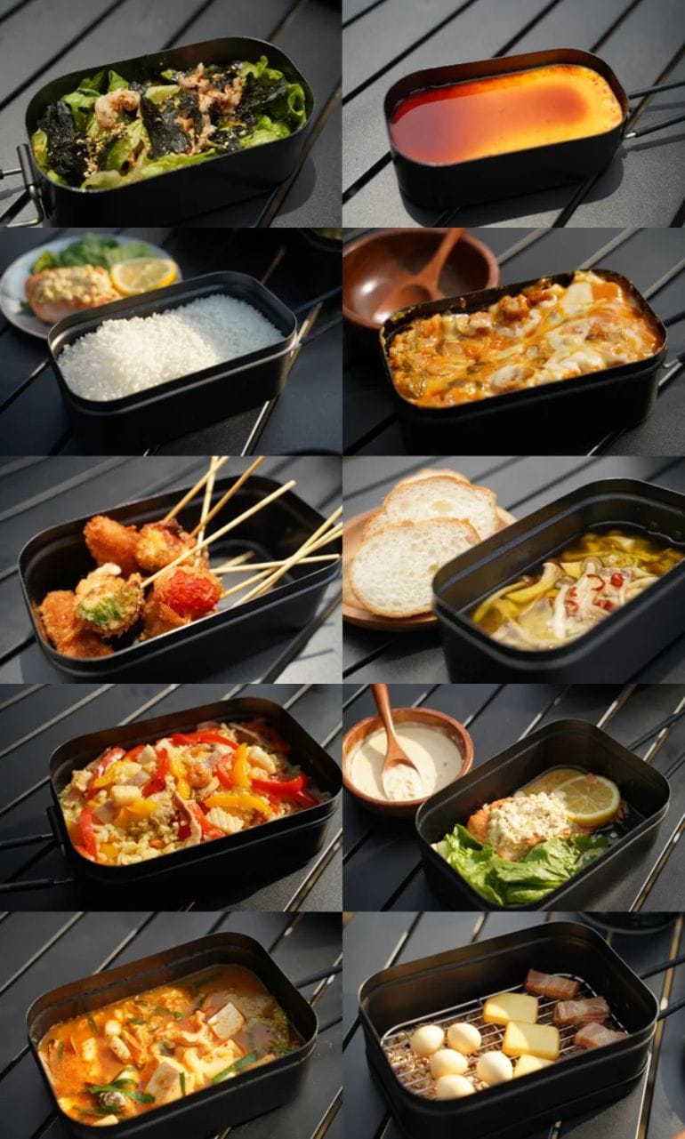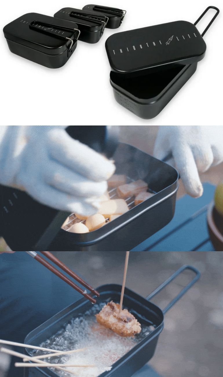 ケイ素樹脂・シリコーン樹脂によるノンスティック加工となり耐熱温度が350℃まで進化したことで、加工メスティンでは不可能だった「燻製」や「揚げ物」の調理も可能となりました。