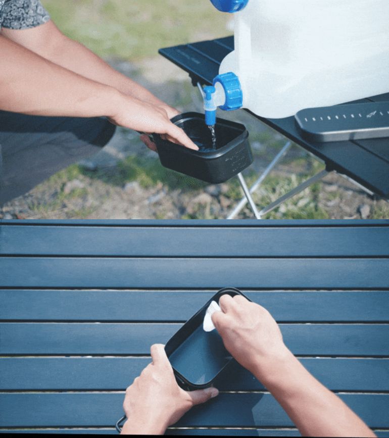 水が少ない場所でもウエットティッシュなどで拭くだけでもお手入れOK!