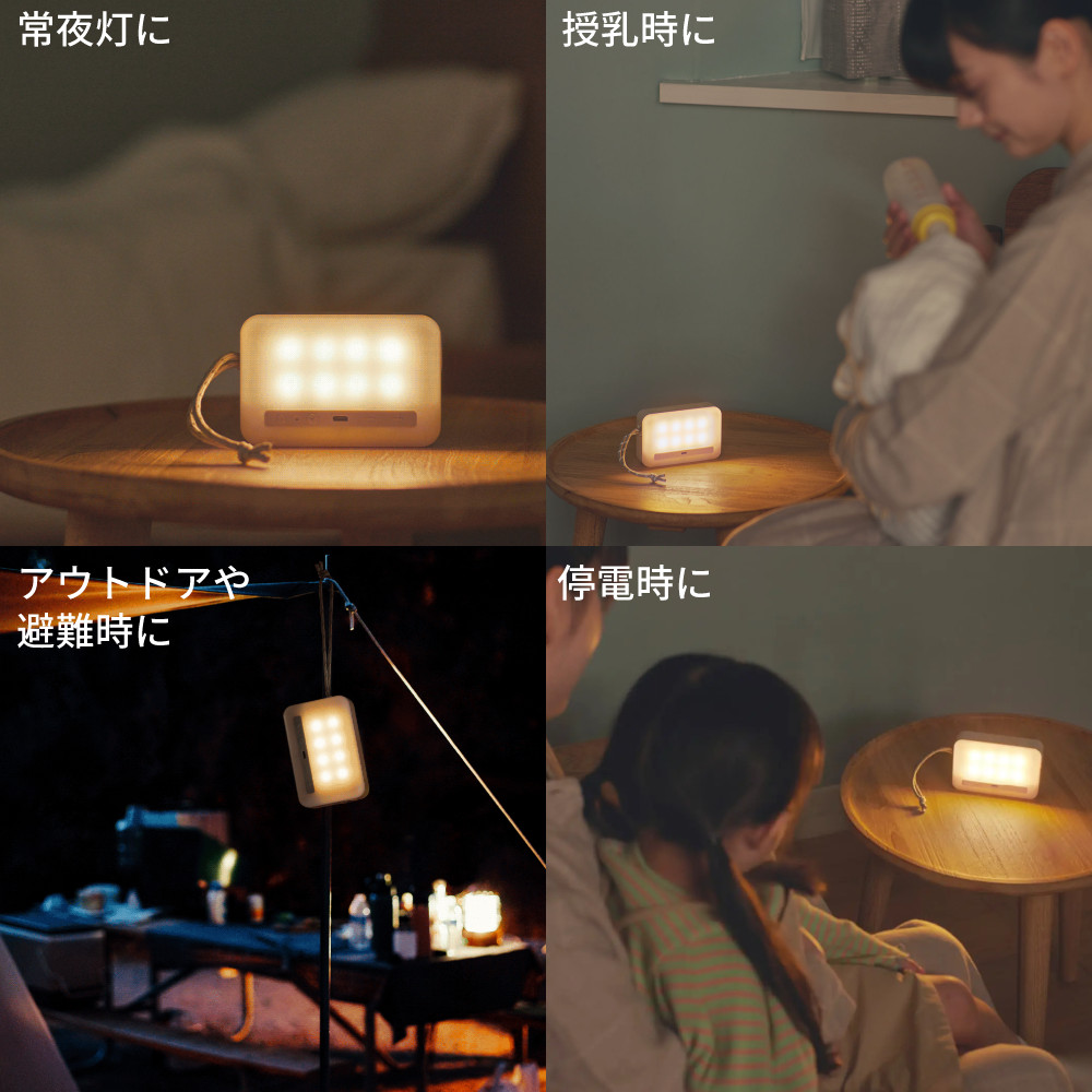 ライトボタンを押すとランタンが点灯し、キャンプや授乳などに役立ちます。