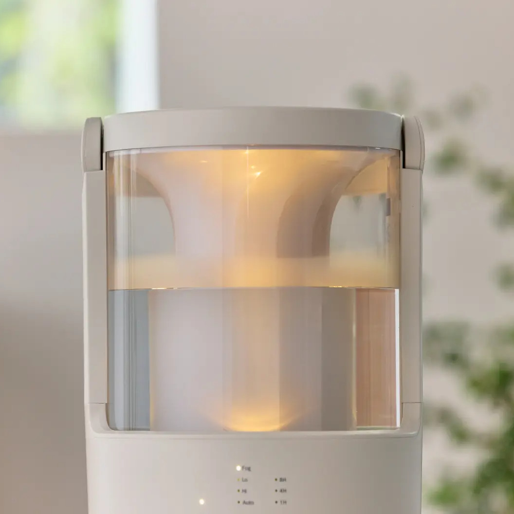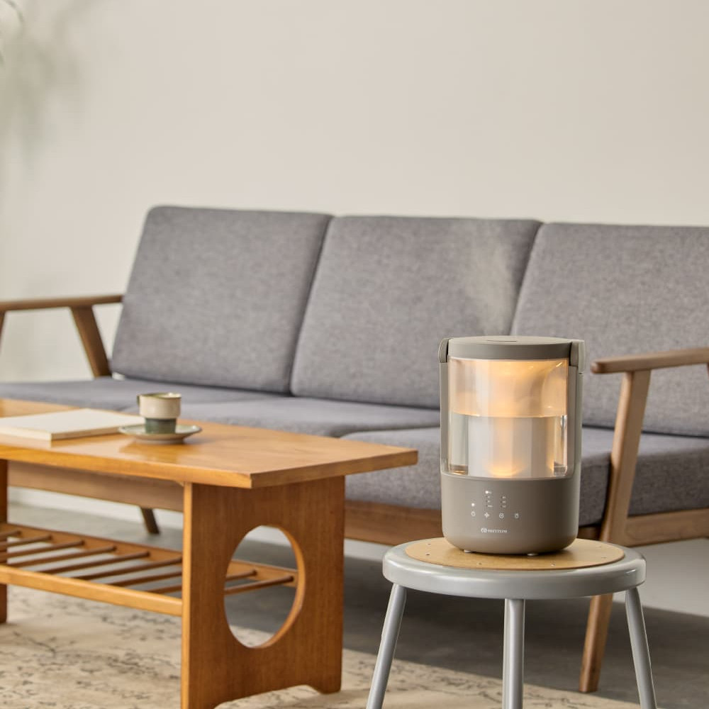 好評の超音波式プールレス加湿器「MIST 350」のコンパクトサイズ版として登場。適用畳数最大7畳の空間を加湿し、寝室や子供部屋などのパーソナルな居室などプライベート空間で使用できる「洗いやすさ」と「使いやすさ」をさらに追求した加湿器です。