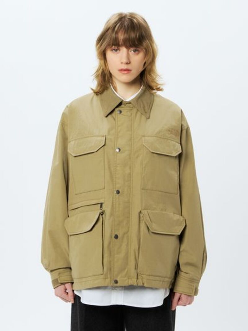 | その他詳細 1 | アウトドアフィールドからタウンユースまで、さまざまなシーンで活躍する、ワークジャケットタイプのアウター。 表地は、異形中空糸を使用した軽さが特徴のナイロン素材。 コットンライクな自然な風合いで、はっ水性も備わっています。 ポケットは左右の胸とサイドにマチ付きのフラップポケットを配置。 裾はアジャスターによりフィット感の調節が可能です。 襟部分にコーデュロイを使用し、良質な質感を演出。立ち襟で着用することもできるアイテムです。 |
