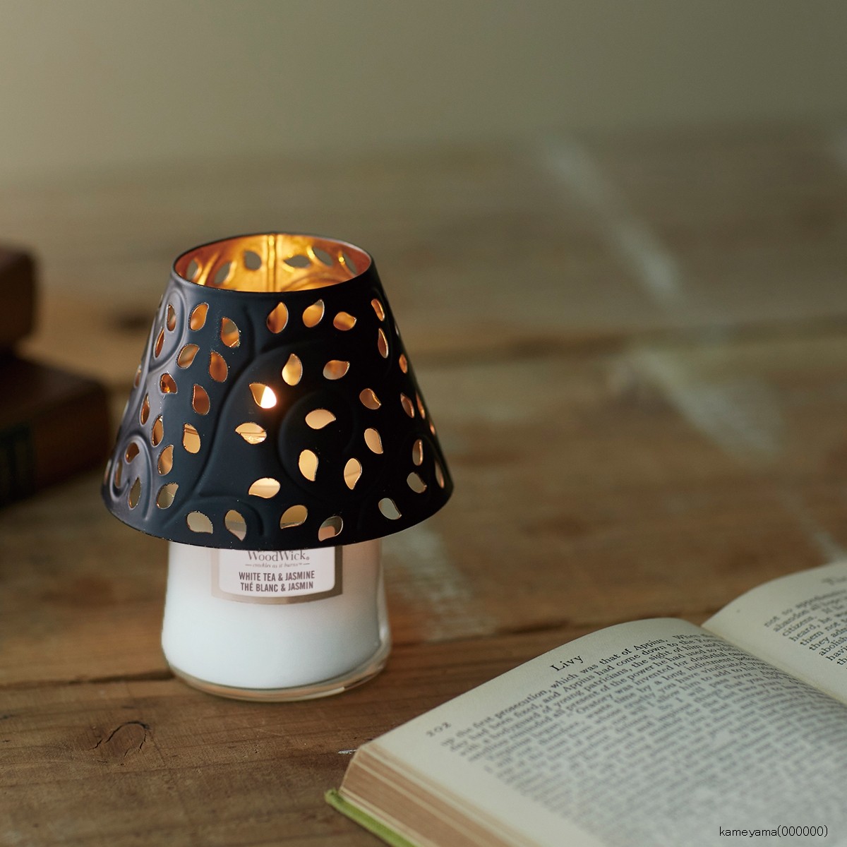 【正規品】カメヤマキャンドル WoodWick ジャーS ホワイトティー&ジャスミン シェードセット 化粧箱入り
