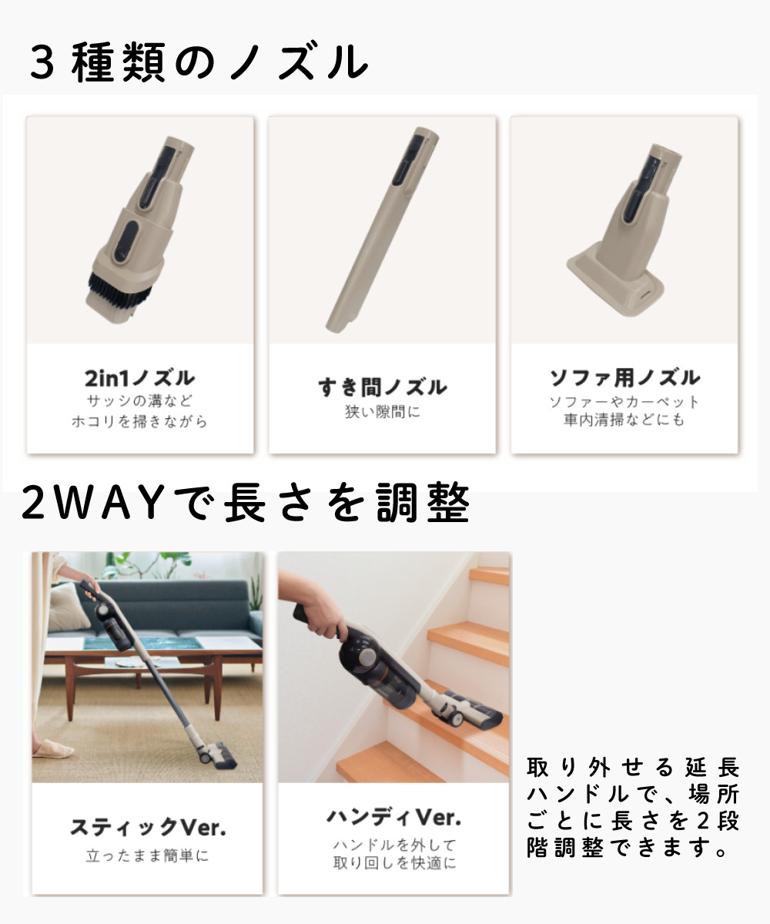 | サイズ/寸法 | 外形寸法 スティック時:250(W)×130(D)×1223(H)mm ハンディ時:110(W)×130(D)×495(H)mm |