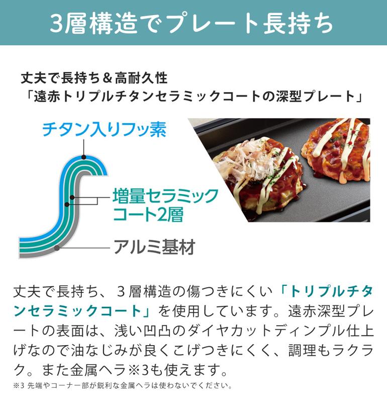 本体がプレートのふちより高くなっており熱いプレートにふれにくくなっています。また、本体ガードは分解できて丸洗いできるので、気になる油汚れもきれいに落とせます。
