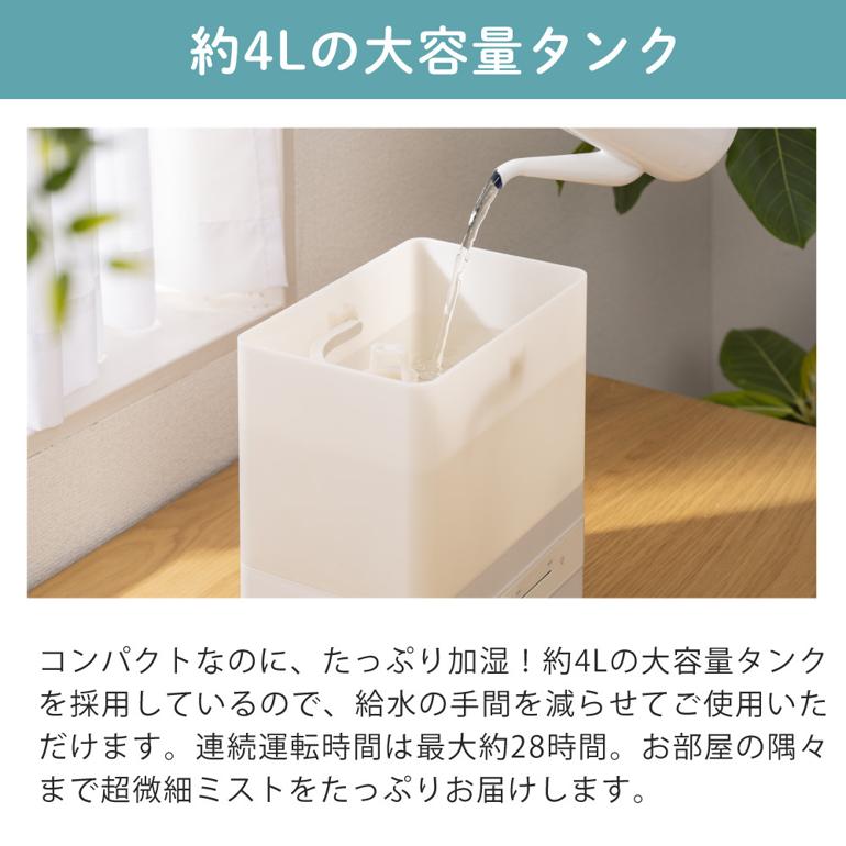 | その他詳細 1 | 消費電力:16~25W 加湿方式:超音波式 上部給水式:〇 オフタイマー:? タンク容量:4L 加湿量:約120?260ml/h |