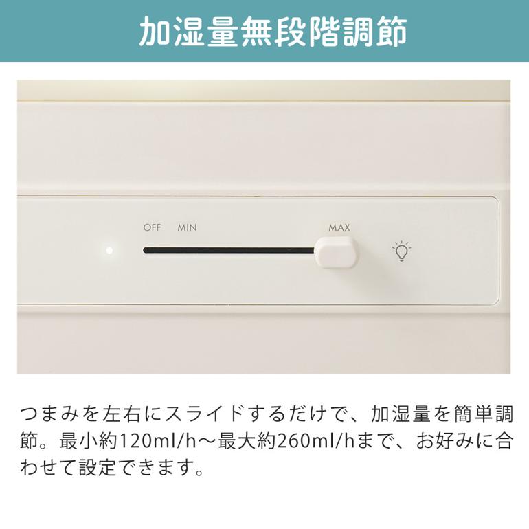| その他詳細 2 | 適用床面積:木造4畳/プレハブ7畳 連続強運転時間:約28?13時間 加湿量切替:無段階 アロマ対応:〇 LEDライト:〇 湿度設定:? |