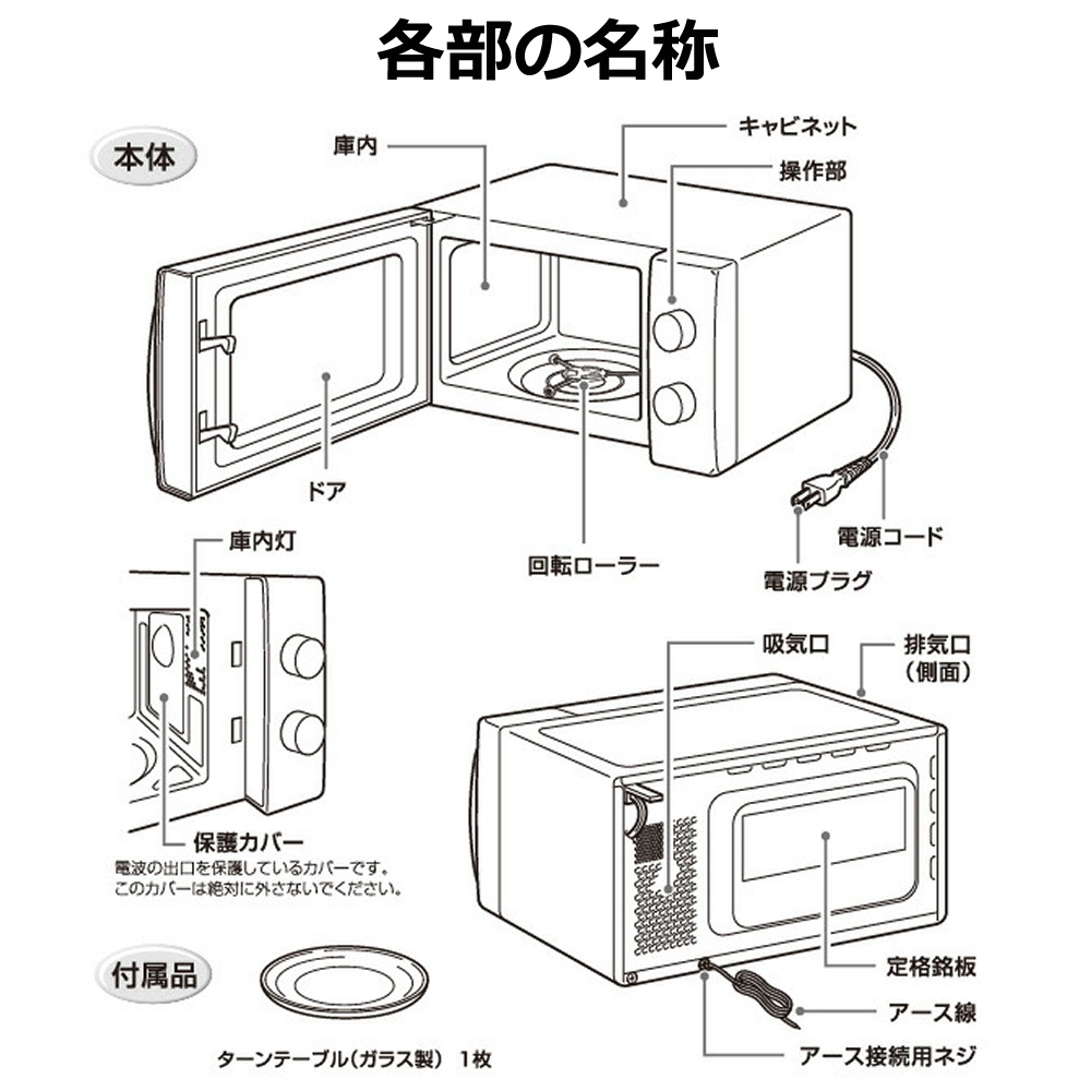 | その他詳細 1 | 定格電圧:AC100V 定格周波数 50Hz:※50Hz地域専用です 定格消費電力:1150W 高周波出力:700W 発振周波数:2450MHz 年間待機消費電力量:0kWh/年 年間消費電力量:59.9kWh/年 ● 年間消費電力量は省エネ法・特定機器「電子レンジ」新測定法による値を表示しております。 ● 高周波出力はJIS C9250に規定する第2法によって測定したものです。 ● 製品の外観および仕様は、改良のため予告なく変更することがありますが、ご了承ください。 ● この製品は日本国内用に設計されていますので、日本国外では使用できません。 FOR USE IN JAPAN ONLY. |