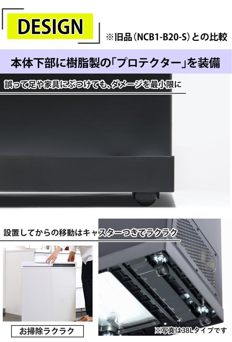 | サイズ/寸法 | 製品外寸(約):幅23×奥行44.3×高さ53cm コード長さ:1.5m 製品内寸(約):幅14.5×奥行34×高さ24cm 容量目安(約):オムツ×18個、Mサイズのゴミ袋×4個 ※おおよその数値です |