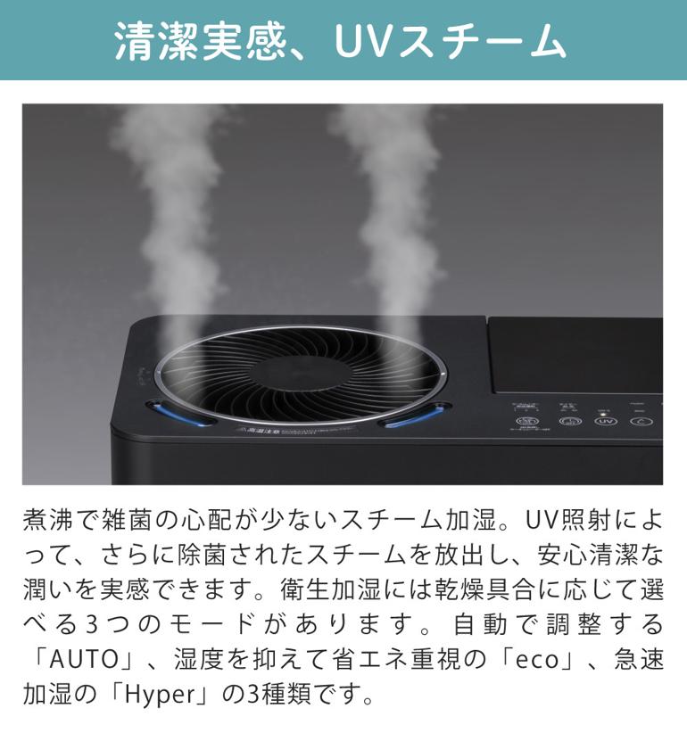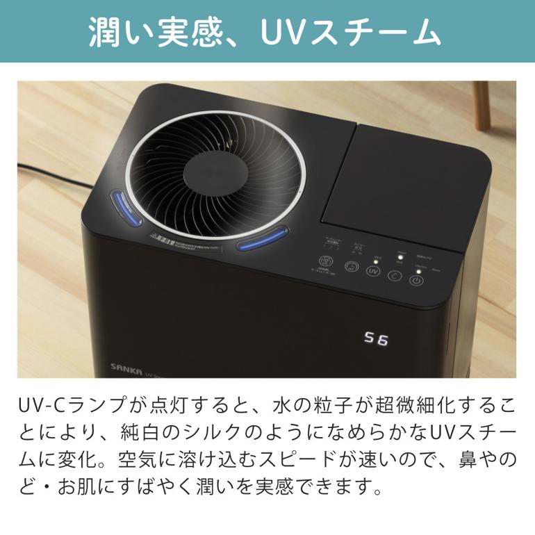 サンカ UVパワースチーム式加湿器 SSH-8100UVBK ブラック サーキュレーター搭載